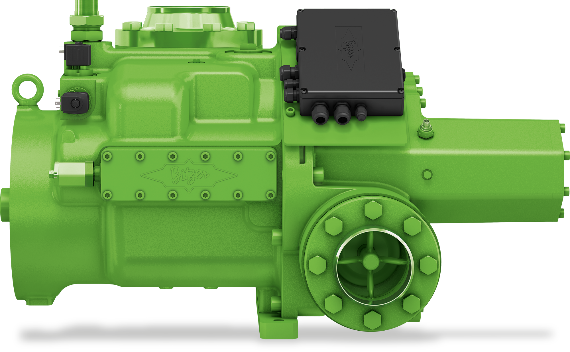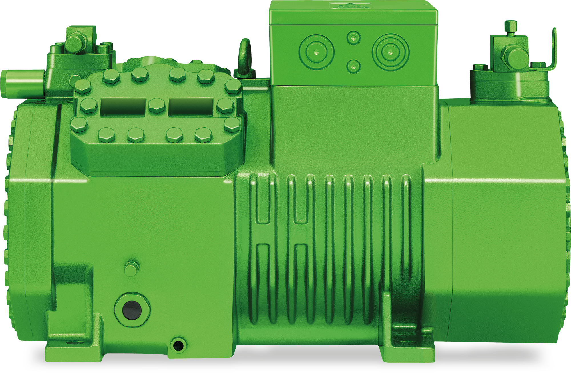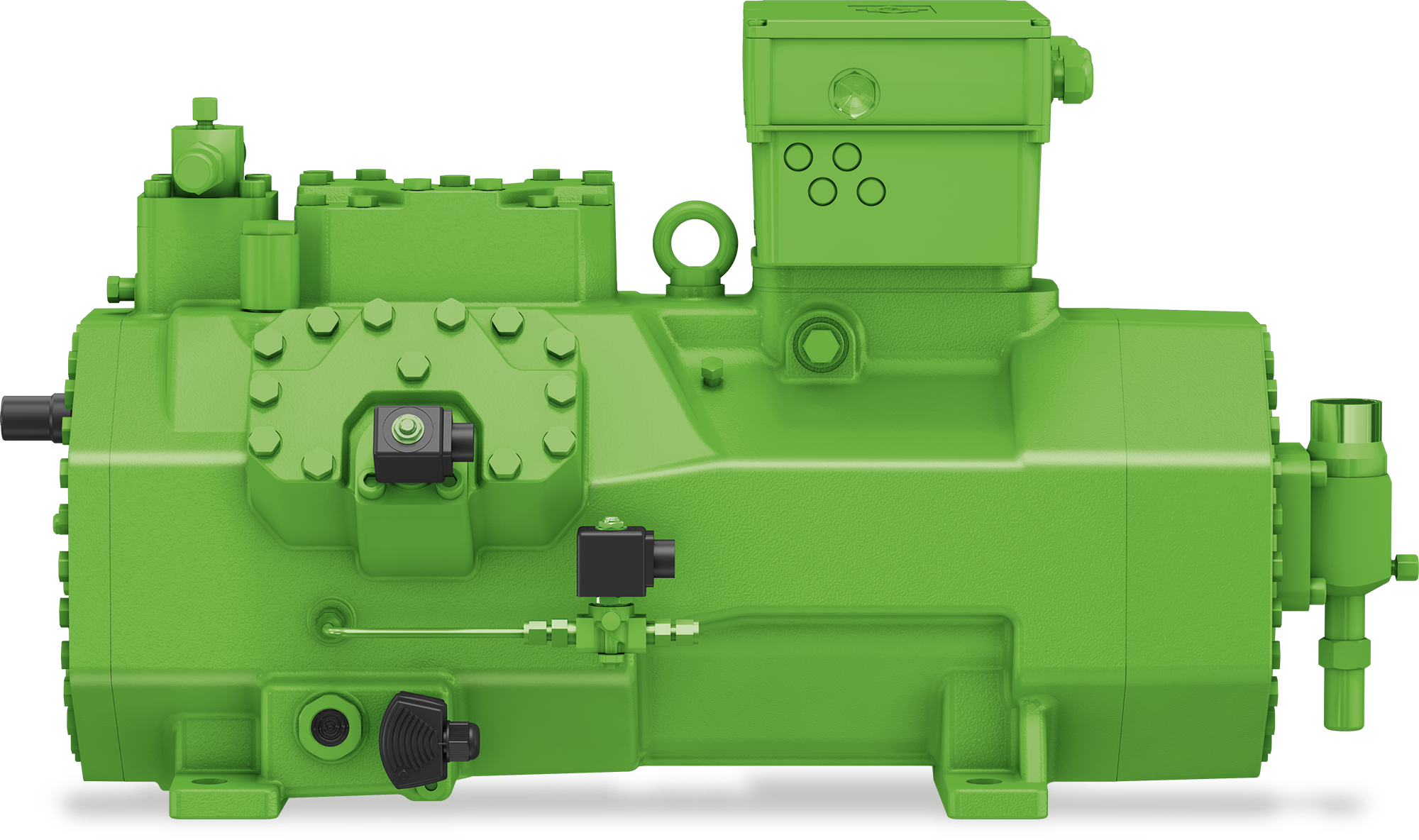 Halbhermetischer Hubkolbenverdichter mit hoher Kälteleistung und minimalem Energiebedarf. Optimiert für HFKW-, HFO- sowie Niedrig-GWP- Kältemittel.