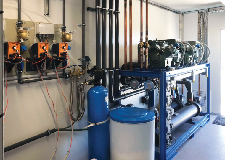 Operational security has always been a top priority for WOCO; after all, maximum availability is required in the automotive industry. The risk of complete interruption had to be close to zero – should a component of the system nevertheless fail, at least 60 per cent of production should be able to continue. This requirement was a recurring theme throughout the entire concept. Reisner used a double system with two high-quality compressors, each with a cooling capacity of 96 kW: two capacity controlled BITZER ECOLINE 6FE-44Y reciprocating compressors operate as part of separate refrigerant circuits, each with its own BITZER DH1-193/STD shell and tube evaporator as well as condensers. A dry cooler serves for winter relief. The result of all this sophisticated technology: “The piping in the hall was very complex”, reports Stützer. “Our requirement was that the systems should be able to supply the majority of the production independently of each other. As such, we needed more pipes, more valves, and more butterfly valves than if we had used a simple solution”. Reisner planned everything to measure, delivering the entire refrigeration system and its accessories in a twelve-metre container.