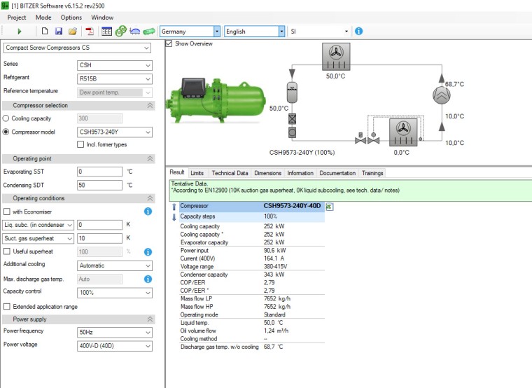 Sindelfingen, 21.10.2020. With the BITZER software, customers can calculate the performance data for most BITZER products with the most diverse refrigerants and access technical information. The refrigeration and air conditioning specialist is continuously expanding its BITZER software – and has made it possible to use it with the new refrigerant R515B for its screw compressors. R515B is a non-toxic, non-flammable A1 alternative to R134a and R1234ze(E) with a low GWP factor.