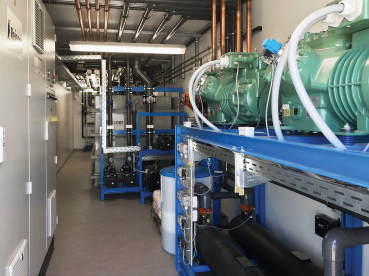 Operational security has always been a top priority for WOCO; after all, maximum availability is required in the automotive industry. The risk of complete interruption had to be close to zero – should a component of the system nevertheless fail, at least 60 per cent of production should be able to continue. This requirement was a recurring theme throughout the entire concept. Reisner used a double system with two high-quality compressors, each with a cooling capacity of 96 kW: two capacity controlled BITZER ECOLINE 6FE-44Y reciprocating compressors operate as part of separate refrigerant circuits, each with its own BITZER DH1-193/STD shell and tube evaporator as well as condensers. A dry cooler serves for winter relief. The result of all this sophisticated technology: “The piping in the hall was very complex”, reports Stützer. “Our requirement was that the systems should be able to supply the majority of the production independently of each other. As such, we needed more pipes, more valves, and more butterfly valves than if we had used a simple solution”. Reisner planned everything to measure, delivering the entire refrigeration system and its accessories in a twelve-metre container.