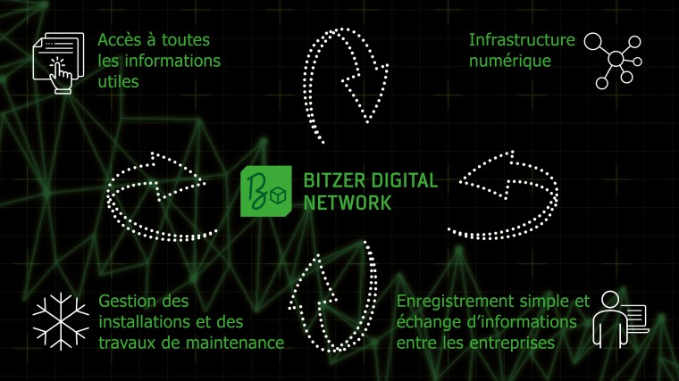 Le BITZER Digital Network, infrastructure numérique, permet aux différentes parties prenantes de considérer leurs produits BITZER de manière globale ou détaillée. Le BDN facilite notamment le stockage, la gestion et l'accès à toutes les informations sur les produits et les applications, offrant ainsi aux utilisateurs une solution simple pour surveiller leurs installations. Il permet par ailleurs d'organiser les activités de maintenance et de gagner du temps puisque toutes les données nécessaires sont disponibles d'un simple clic. Le réseau réunit en un seul endroit toutes les informations et tous les services numériques nécessaires. Les principales informations spécifiques aux produits et aux applications sont affichées à différents niveaux.