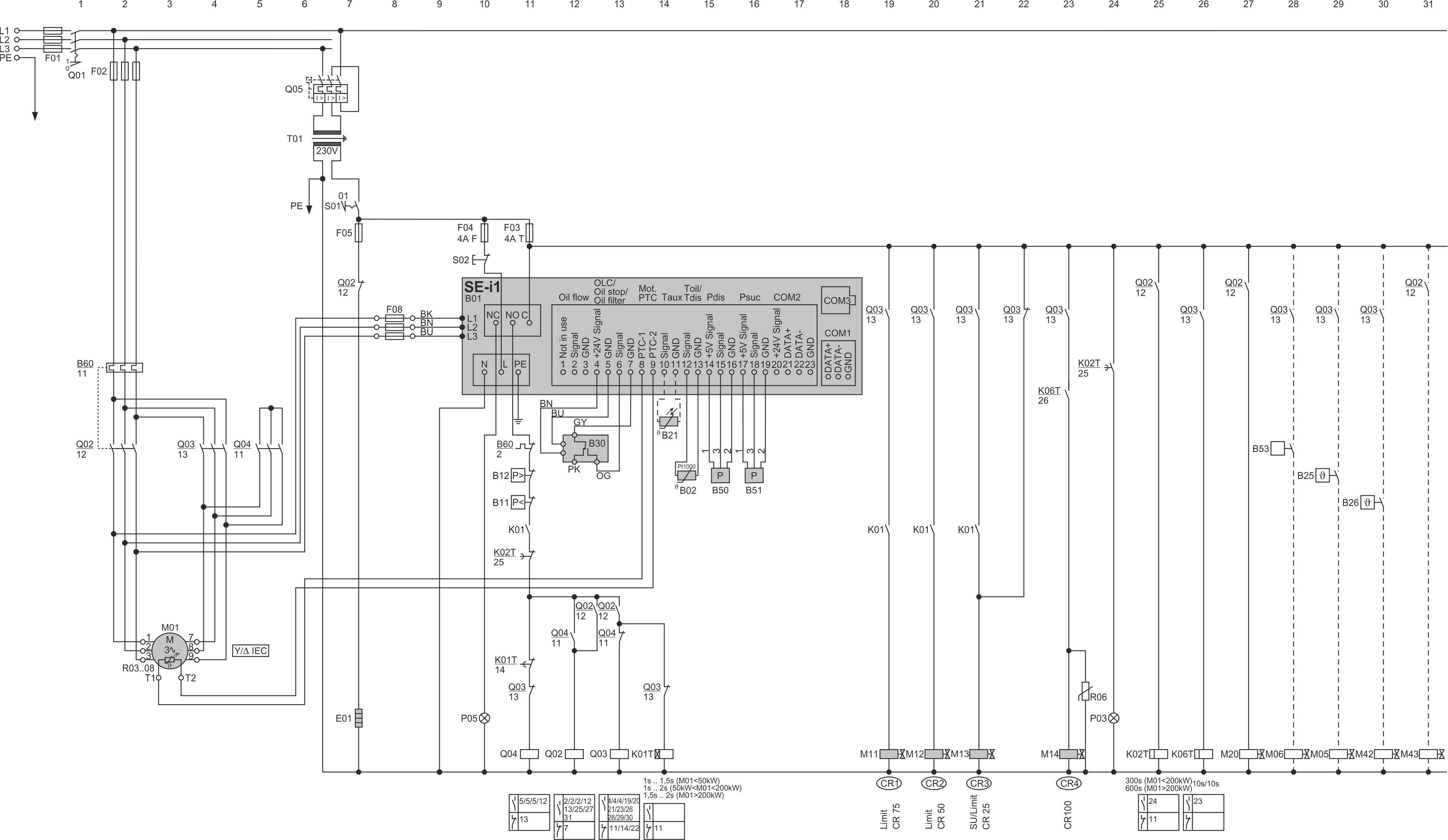 Q02 | Schütz für erste Teilwicklung (PW) oder Hauptschütz (Y/Δ) oder Verdichterschütz bei Direktanlauf |