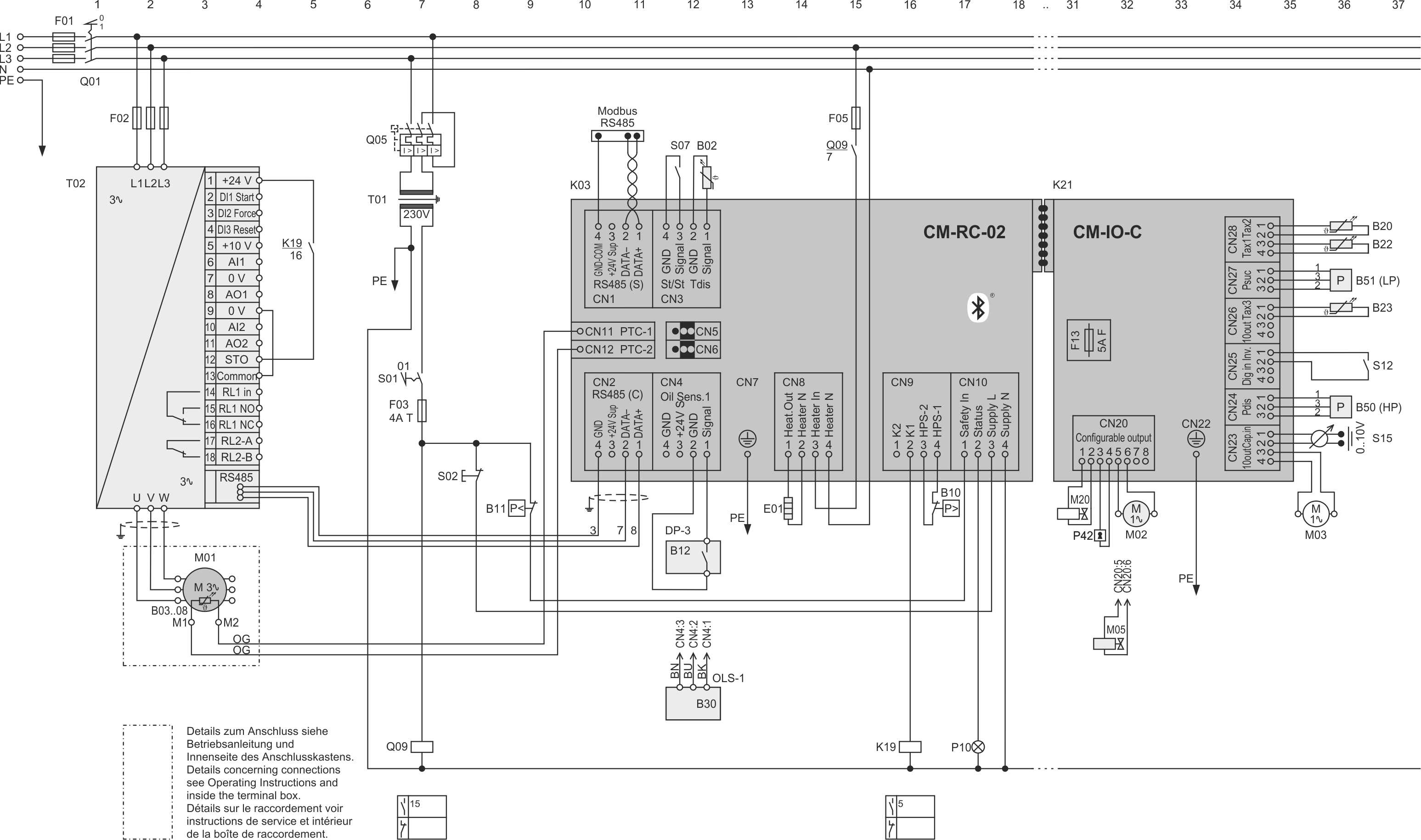 T01 | Steuertransformator (Beispiel für 230 V, erforderlich gemäß EN60204-1) |