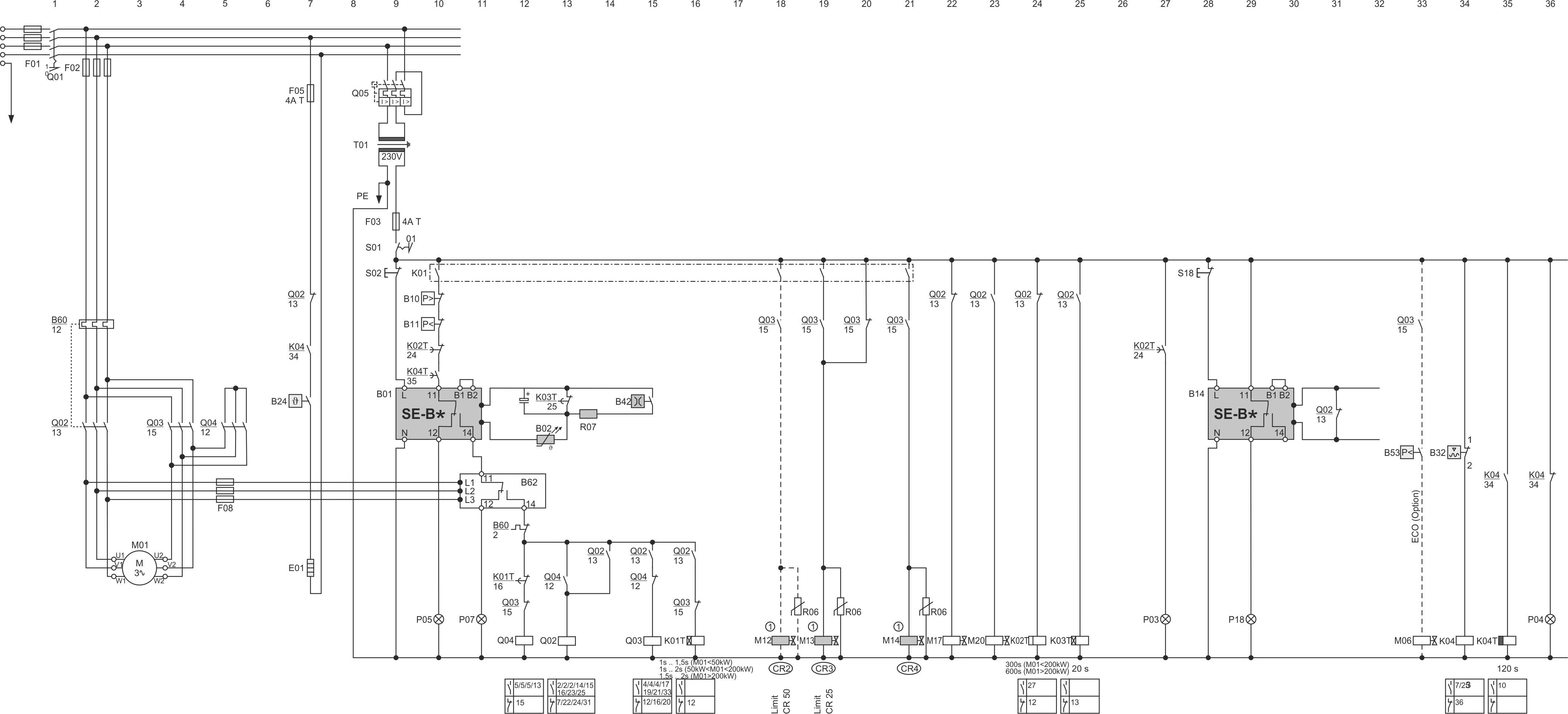T01 | Steuertransformator (Beispiel für 230 V, erforderlich gemäß EN60204-1) |