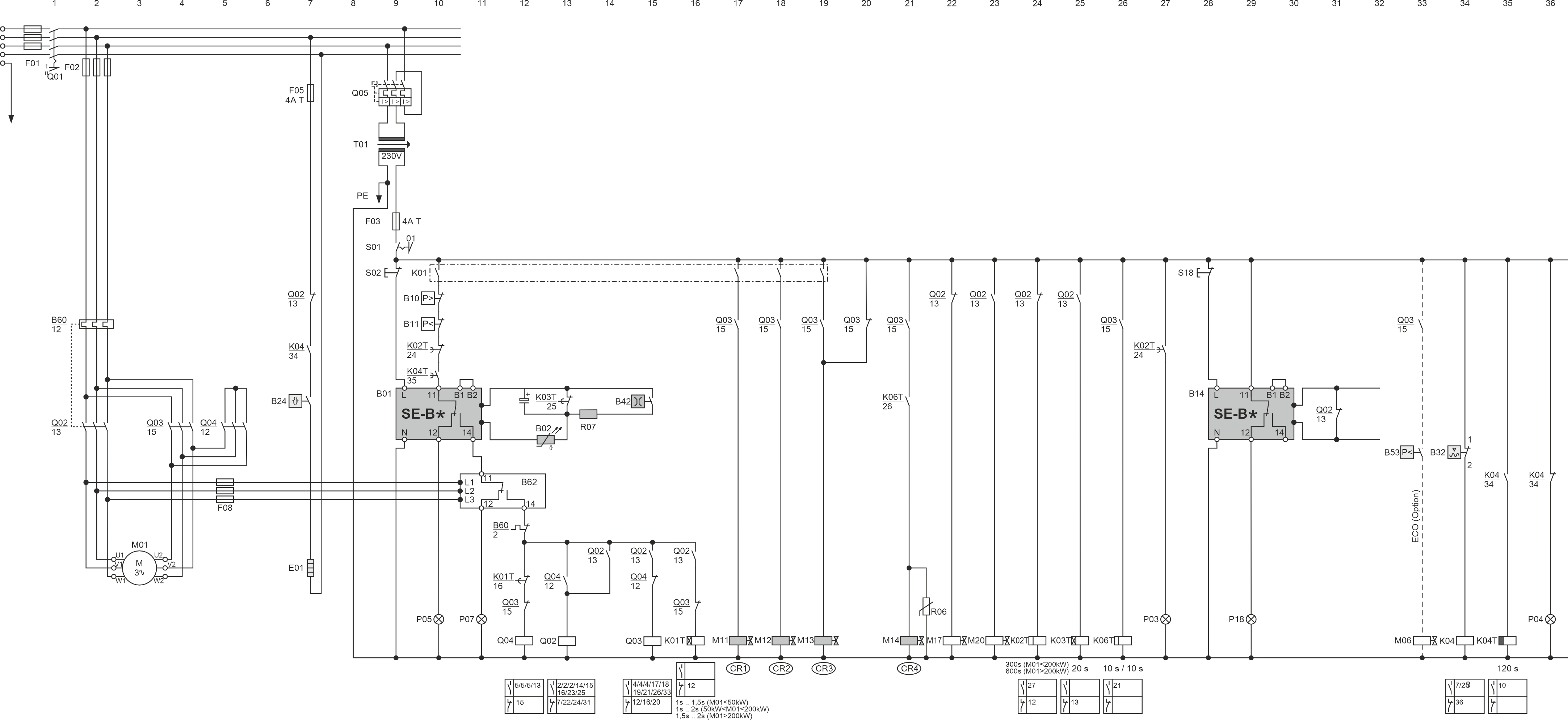 T01 | Steuertransformator (Beispiel für 230 V, erforderlich gemäß EN60204-1) |