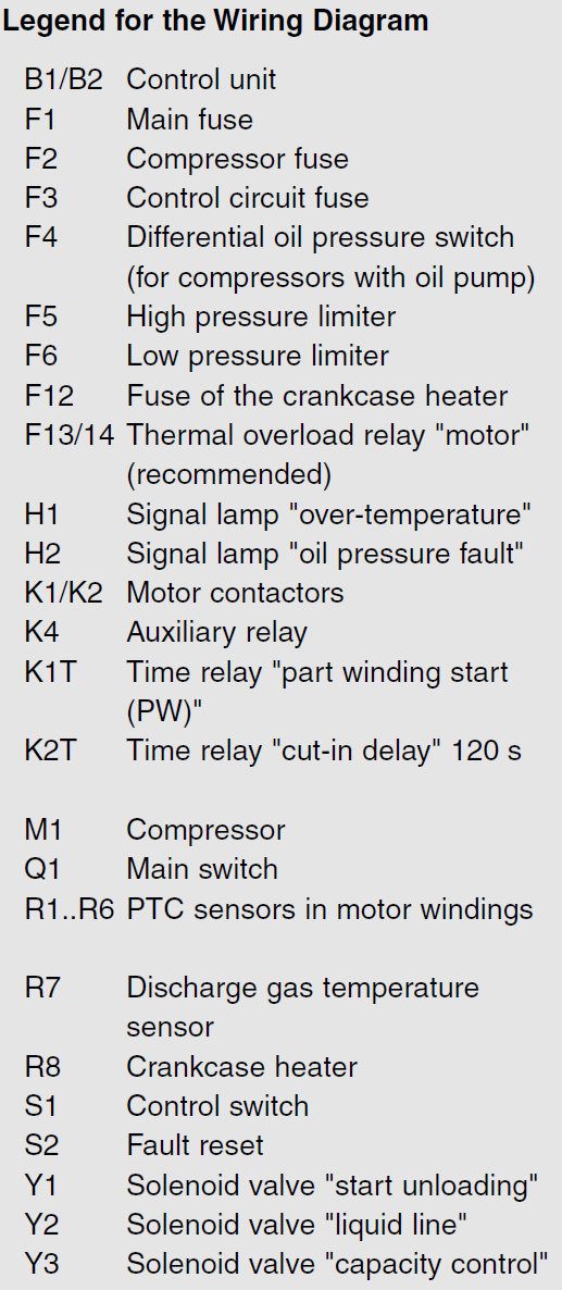 ECOLINE with SE-B1 / SE-B2, direct-on-line start Ecoline reciprocating compressor with protection device SE-B1 or -B2 and direct-on-line start (capacity control as option) Last revision of the diagram:01.01.2010 Technical documents for further information:KB-100: Operating instructions Semi-hermetic reciprocating compressorsCT-120: Protection devices for BITZER compressors