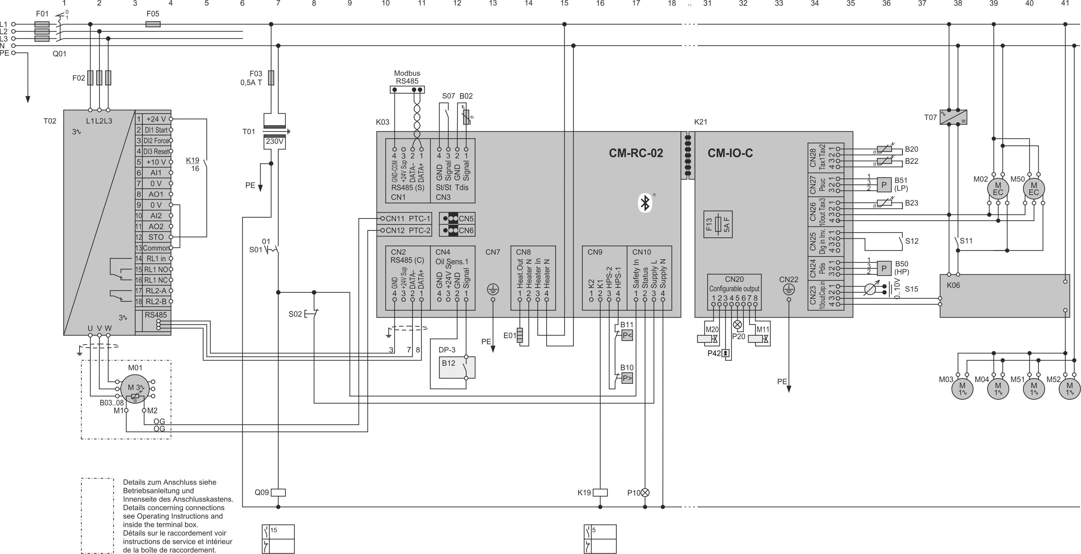 T01 | Transformateur de commande (exemple pour 230 V, requis suivant à EN60204-1) |