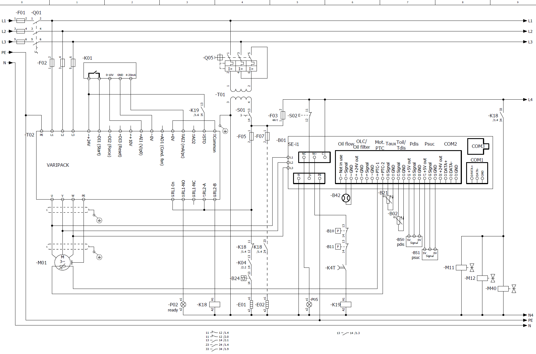 T01 | Transformateur de commande (exemple pour 230 V, requis suivant à EN60204-1) |