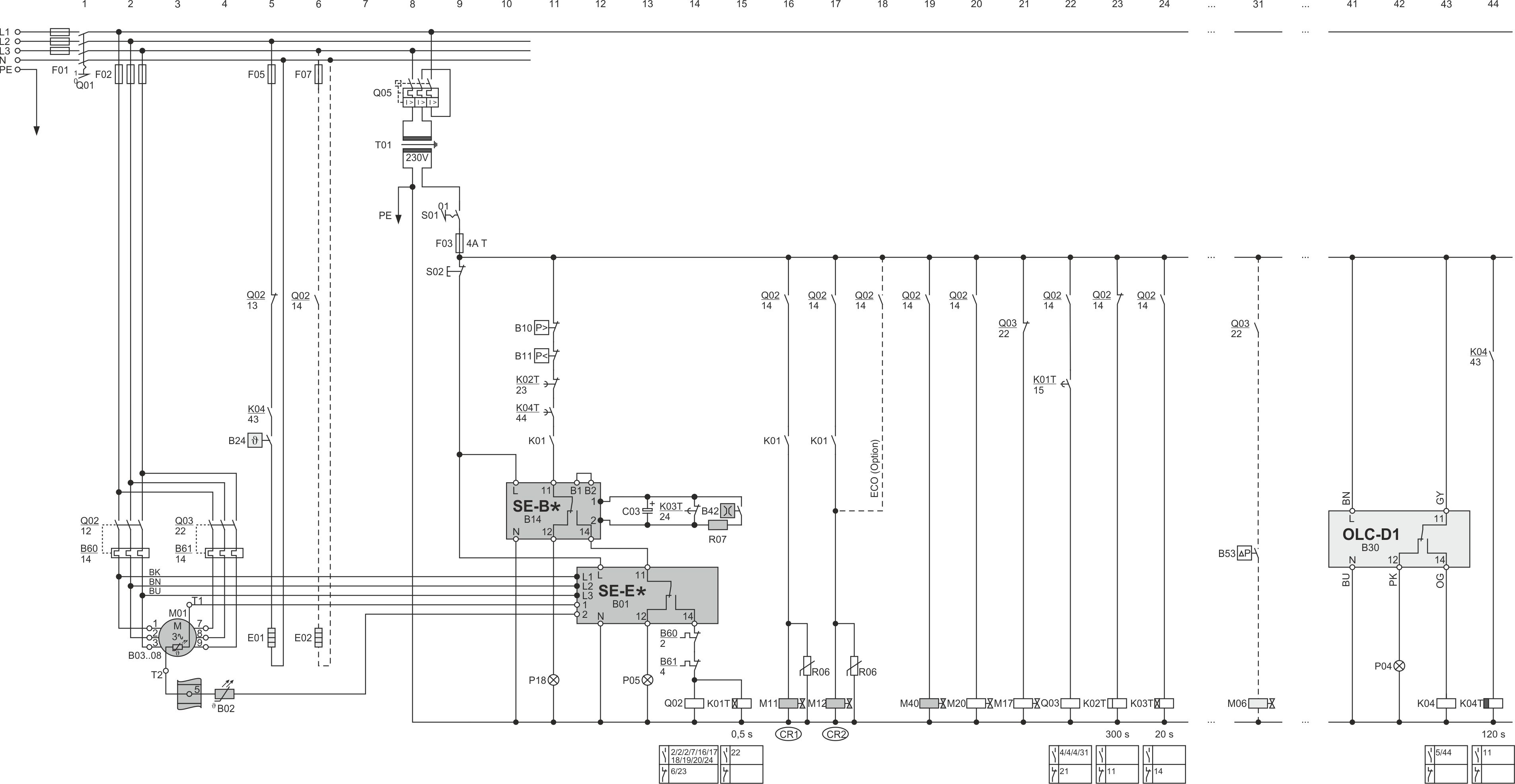 T01 | Transformateur de commande (exemple pour 230 V, requis suivant à EN60204-1) |