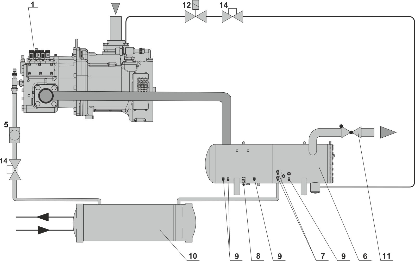 13 | Sekundärölabscheider (bei Hubkolbenverdichtern einziger Ölabscheider) |